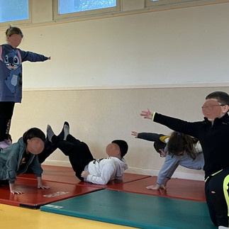 En ce mois de janvier 2026, Chrystelle, notre intervenante sportive, a proposé aux élèves du CP au CM2 un cycle de 4 séances d'acrogym.